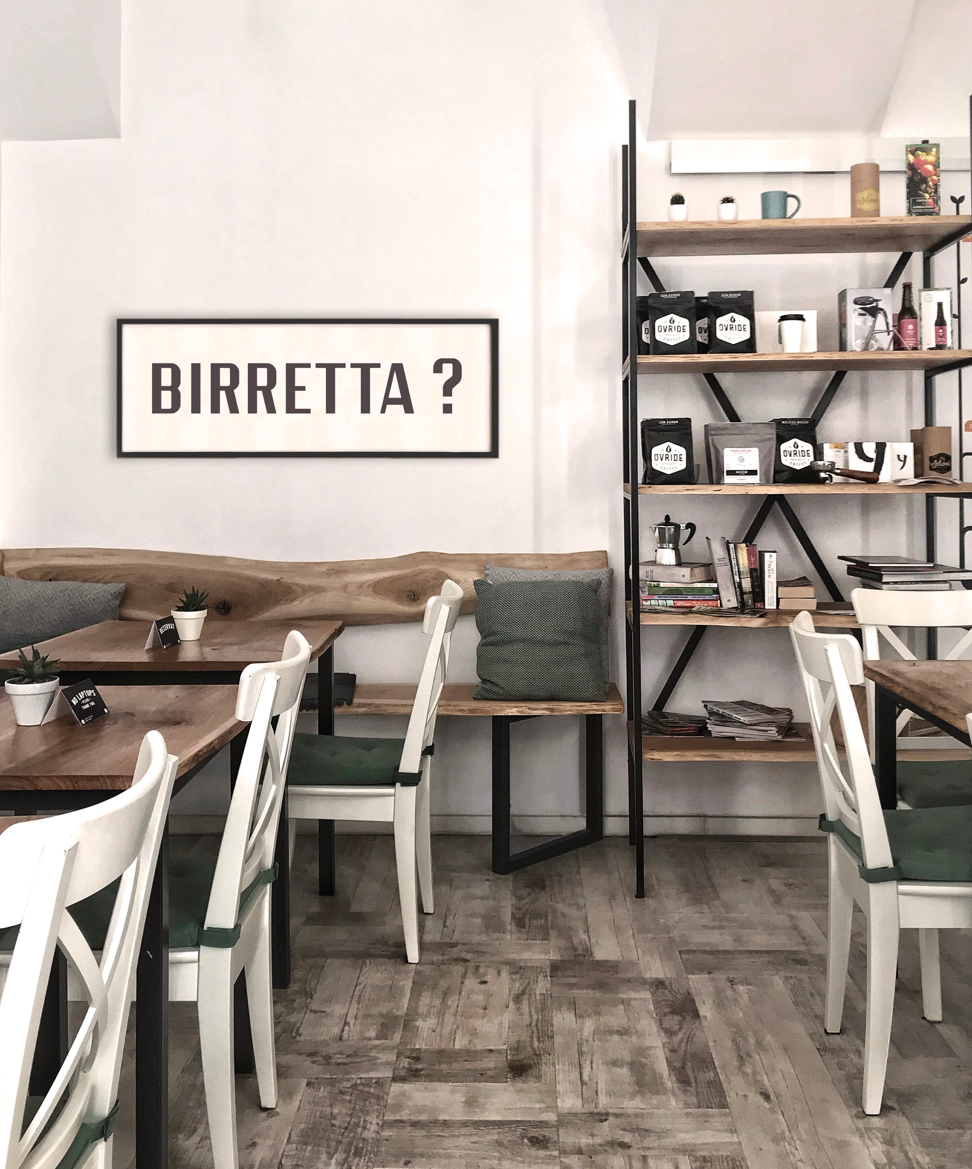 Il soggetto è una insegna calligrafica con la scritta "BIRRETTA ?".