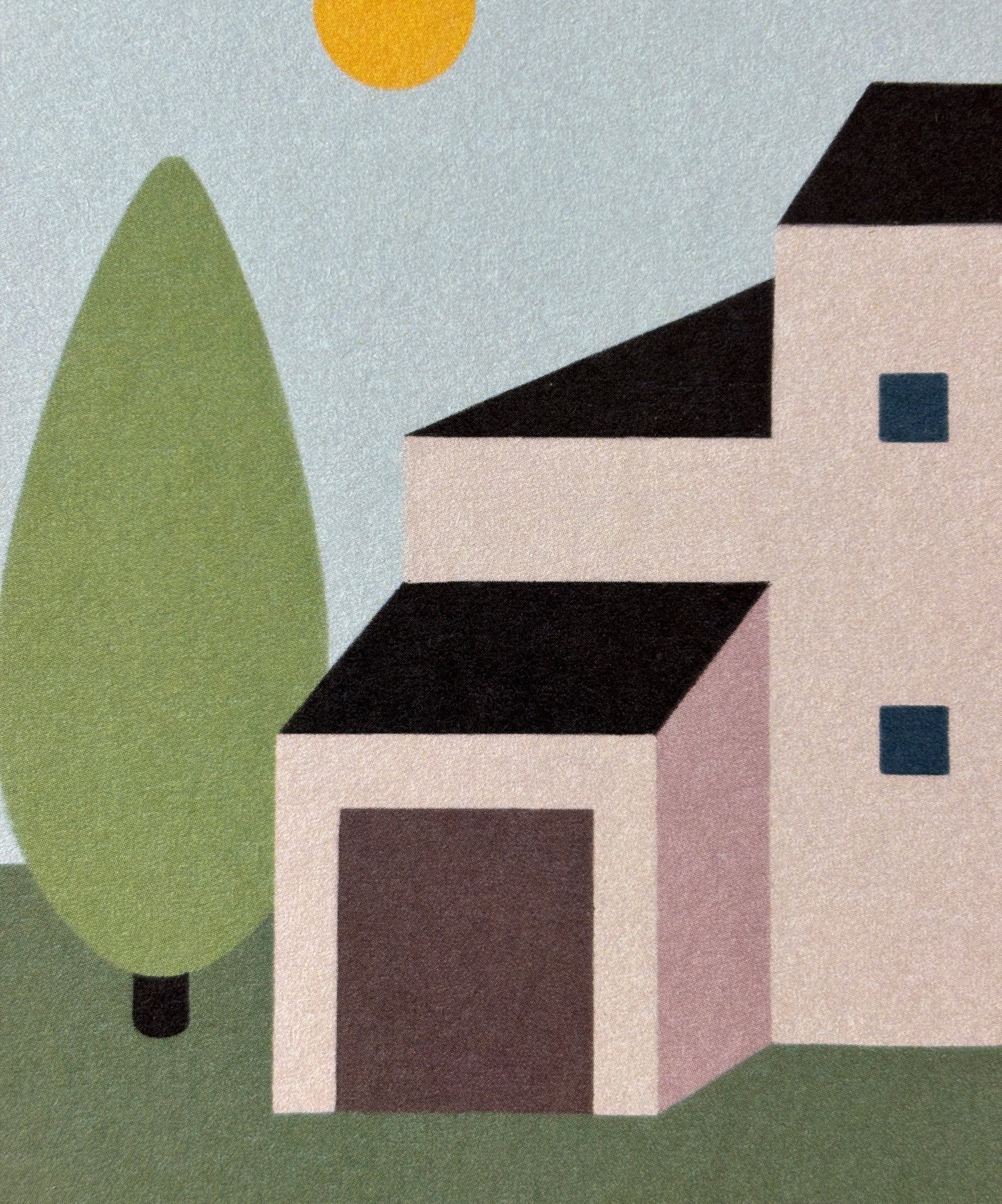 La casa di Boschi fa parte di una serie di illustrazioni originali e stampe che hanno come soggetto i luoghi dell'abitare.