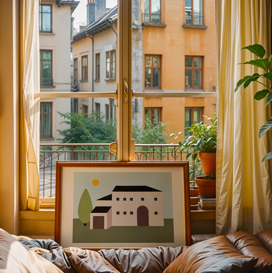 La stampa della casa di Boschi è disponibile nei formati 21x30cm e 30x40cm, e nei Set di stampe in formato 13x18cm.