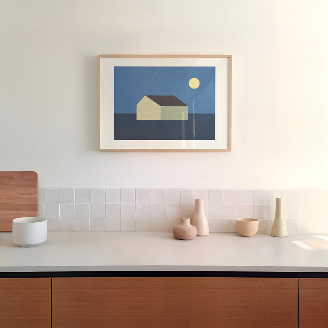 La casa di campagna di notte fa parte di una serie di illustrazioni originali e stampe che hanno come soggetto i luoghi dell'abitare.