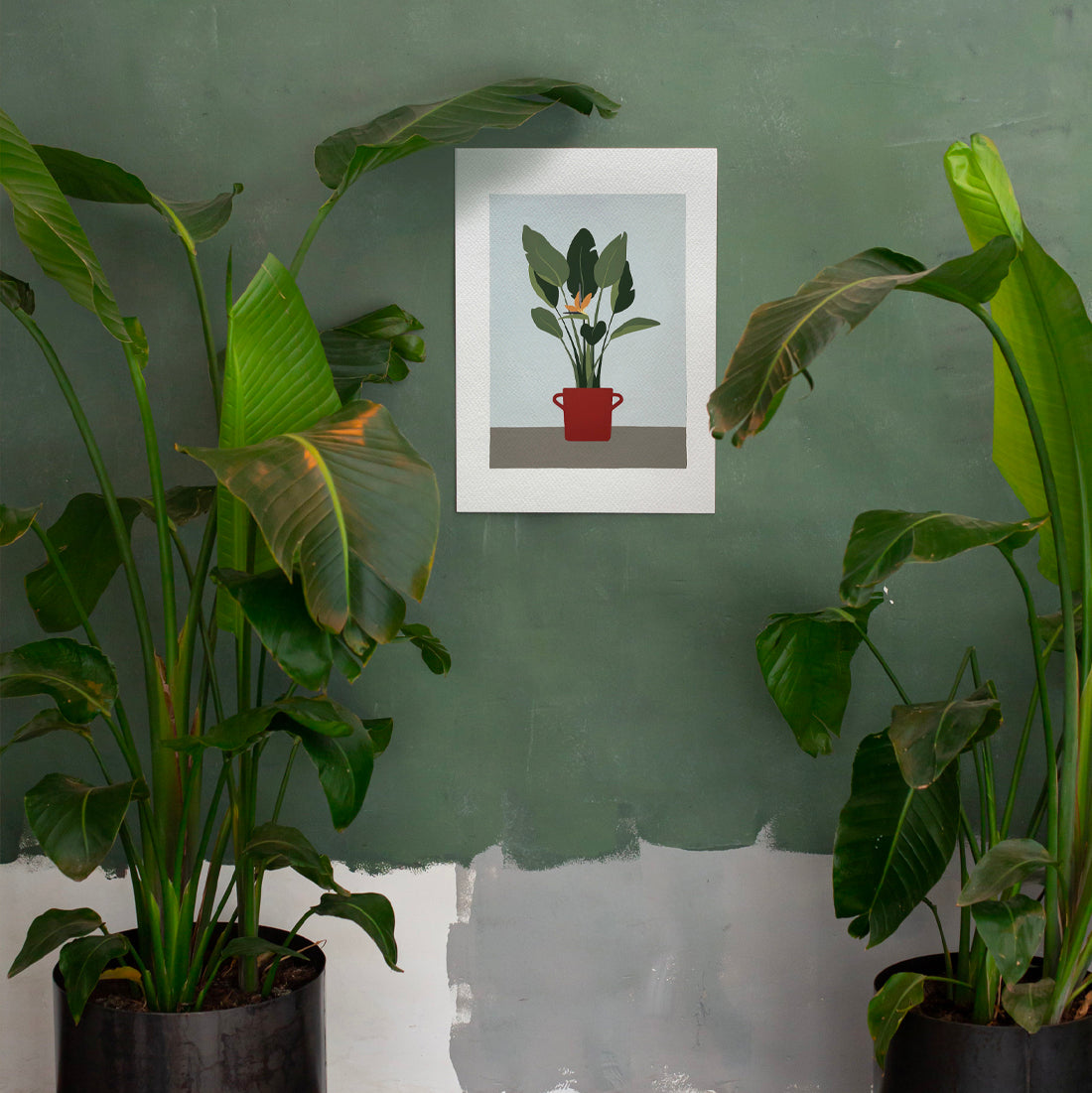 È stata disegnata e dipinta a mano con attenzione maniacale ai dettagli. Il contrasto tra le forme scultoree delle foglie dalle varie sfumature di verde, e il rosso vibrante della pentola vintage che la contiene, crea una figura moderna, perfetta per decorare qualsiasi ambiente, dal soggiorno allo studio.